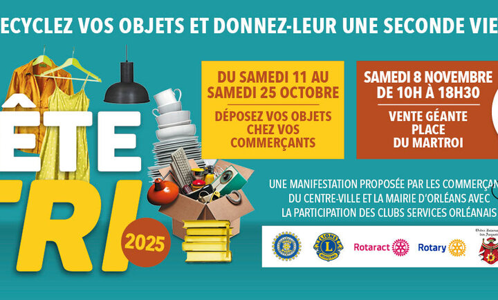 Une grande vente d’objets triés et nettoyés par les clubs-services aura lieu le 8 novembre, place du Martroi (10h-18h30), avec animations (déambulation théâtrale, enchères) et restauration.