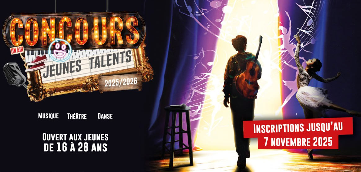 Les inscriptions au concours Jeunes Talents 2025/2026 sont ouvertes ! Les jeunes de 16 à 28 ans sont invités à proposer leur candidature dans l'une des catégories : musique, théâtre et danse.
