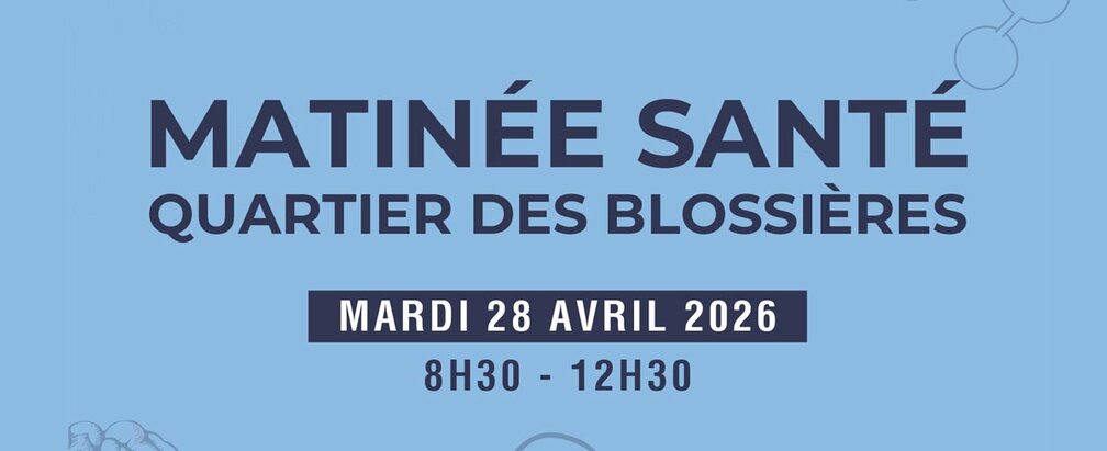 9h à 12h30 : Stand d'informations et de dépistages santé Centre d'animation sociale Blossières (4, rue Antoine-Becquerel) et place Charles-le-Chauve
