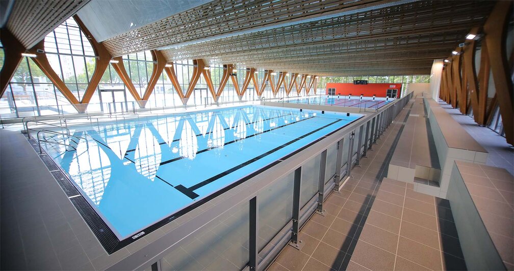 - Un grand bassin de type nordique de 50 mètres et 8 couloirs avec aileron mobile permettant de diviser le bassin en 2 × 25m (16 couloirs).